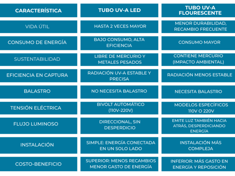 Al elegir la mejor solución para trampas de luz, la tecnología LED se destaca frente a los tubos fluorescentes tradicionales